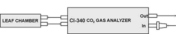 应用CI-340的“闭路光合测量”功能,(参见“闭路光合测量”部分)。输入叶室体积0.65升,叶面积74.5cm2。